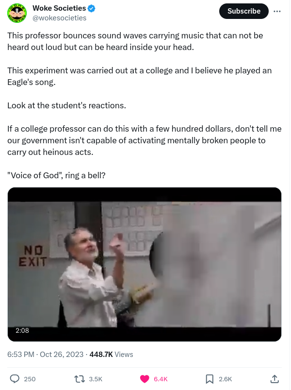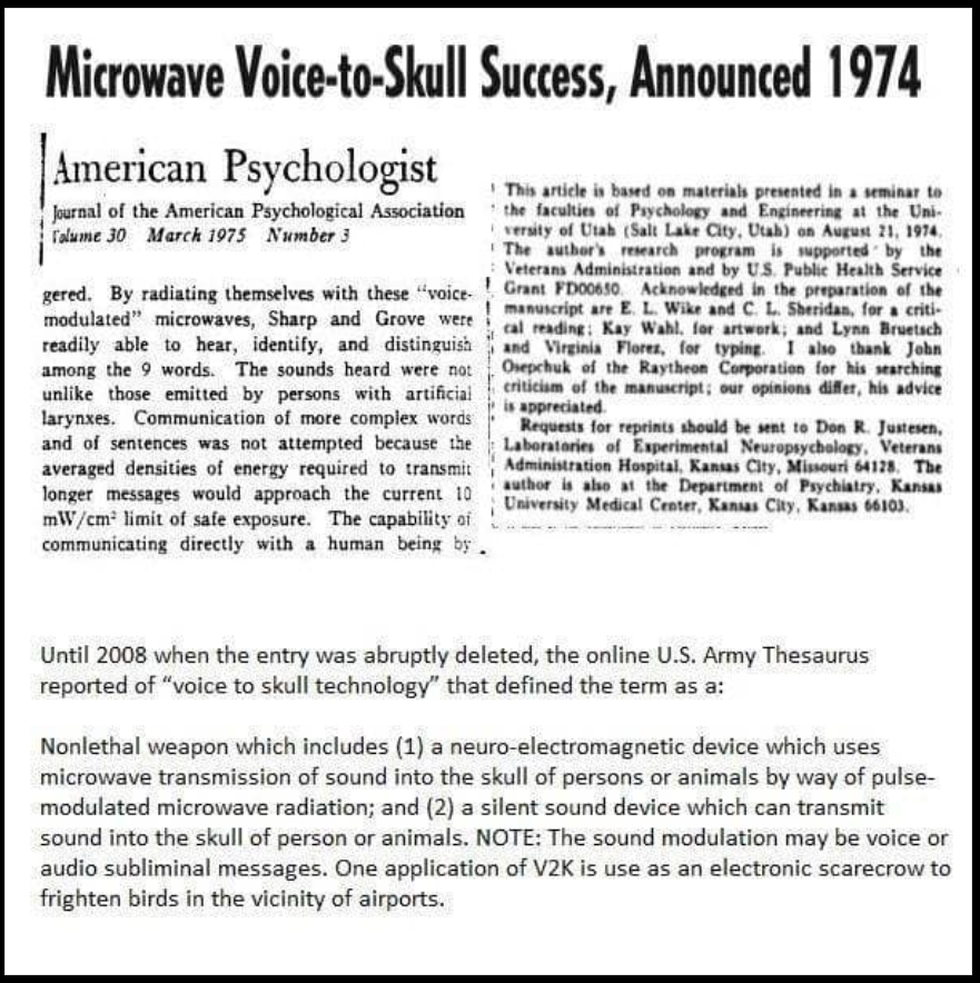 Regeringens MK Ultra "Voice To Skull/Voice of God"-teknologi är verklig och har hörts talas om sedan åtminstone 1974