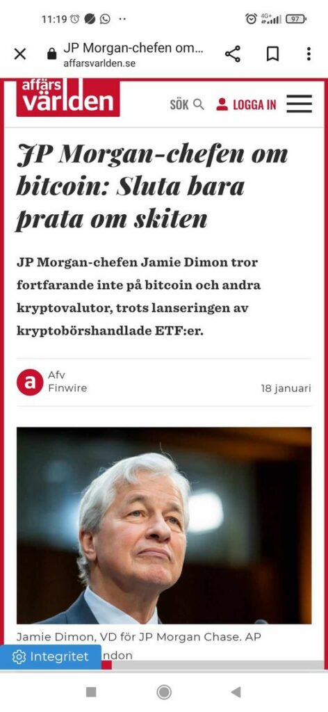 Kontanter skall ju finnas kvar så vad är problemet.?Inget Bitcoin För JP Morgan
