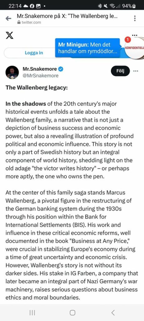 This story of the Wallenberg family is not just a portrayal of business success but also a critical reminder of how power and influence can shape not only economic but also political events on a global scale. It is a narrative that reminds us that history is often written not just by the victors but by those who own the pen. In the case of the Wallenberg family, it is a pen that has redrawn the contours of both Swedish and international history and continues to influence our understanding of the past and present.