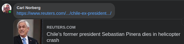 https://www.reuters.com/world/americas/chile-ex-president-sebastianpinera-dies-helicopter-crash-local-media-says-2024-02-06/Frihetens hemlighet ligger i att utbilda människor, medan tyrannins hemlighet är att hålla dem i okunskap.