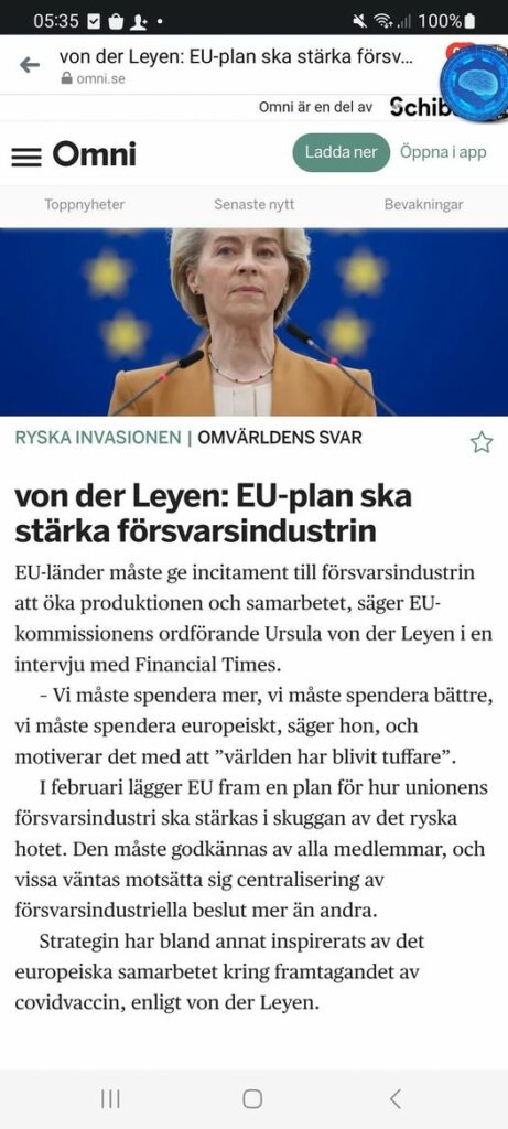 Så pass med henne också med andra ord..Försvarsindustristärkande EU-Plan Med Ursula
