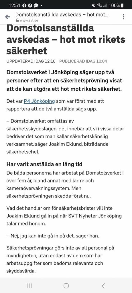 Är det verkligen hela bilden..Rikssäkerhetshotande Domstolsanställda Avskedas