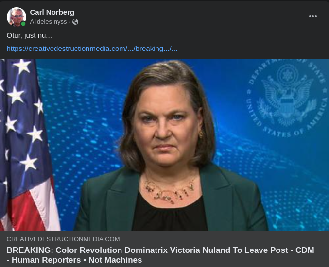 https://creativedestructionmedia.com/news/national/2024/03/05/breaking-color-revolution-dominatrix-victoria-nuland-to-leave-post/Frihetens hemlighet ligger i att utbilda människor, medan tyrannins hemlighet är att hålla dem i okunskap.