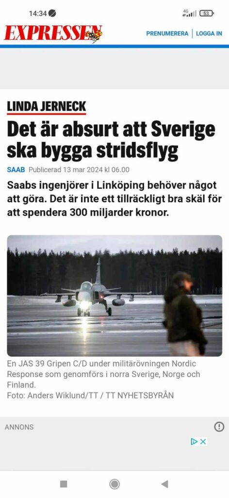 Som sagt de överhörde myset idag 😉Absurt Stridsflygsbyggande