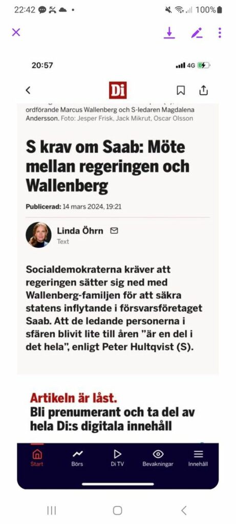 Ett parti...S, Regeringen, SAAB & Wallenberg