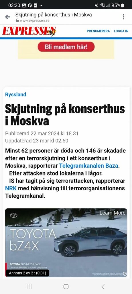 Talespersonen för det ryska utrikesministeriet Maria Zacharova säger att ”om USA har eller haft tillförlitlig information om terrorattacken vid Crocus måste den omedelbart överföras till Ryssland, enligt Ria.IS Tar På Sig Moskvaterrordåd