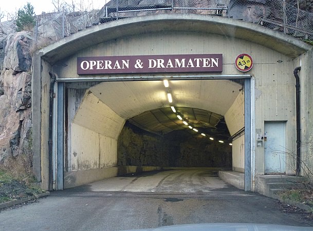 Till höger (öster) om Finnbergstunnelns norra mynning finns ytterligare en tunnelmynning som skyltas "Operan & Dramaten". Den sträcker sig i ett eget tunnelrör öster om Finnbergstunneln i en sväng under Finnberget och ner till Operans och Dramatens verkstäder vid Svindersviken. Tunneln är inte tillgänglig för allmänheten. Den har även en gren till flera bergrum för oljelagring som ligger under Finnberget och började utsprängas redan på 1940-talet. I öst finns ytterligare tre infarter till bergrummen direkt nedanför Finnberget.