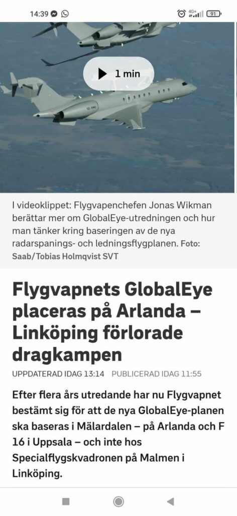 Tänka sig...GlobalEye Hamnar På Arlanda