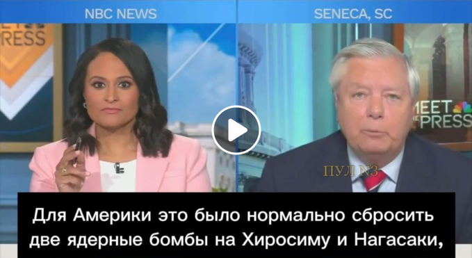 Senator Lindsey Graham om Israel borde kärnvapen i Iran: "Det var okej för Amerika att släppa två kärnvapenbomber över Hiroshima och Nagasaki för att avsluta deras existentiella hot, krig. Var det okej för oss? För mig var det normalt. Och normalt för Israel också , gör allt för att överleva som en judisk stat."