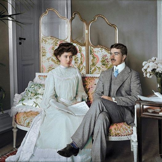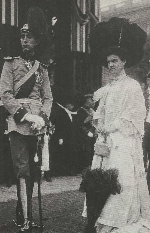 Crown Prince Gustav Adolf of Sweden and his first wife Crown Princess Margaret at Sofiero Palace, 1905.