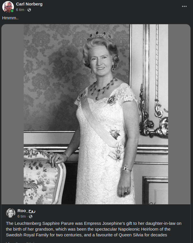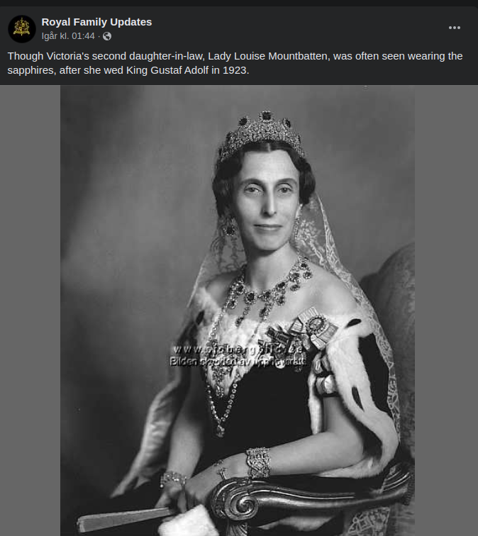 In 1849, Prince Frederick and Princess Louise helped to arrange a marriage between their eldest daughter, Princess Louise, and Crown Prince Charles of Sweden. They became King and Queen in 1859 and only had one surviving child - Louise, or ”Sessan”. Sessan inherited the tiara from her mother.