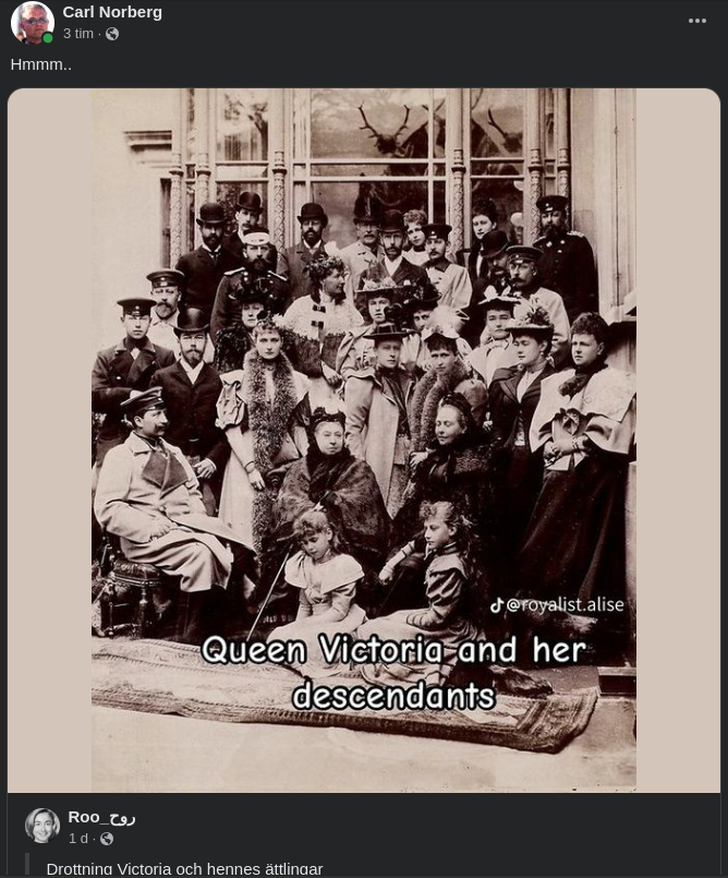 #RoyalHistoria. Europas regerande monarker som härstammar direkt från kung Christian IX av Danmark och drottning Victoria av Storbritannien.