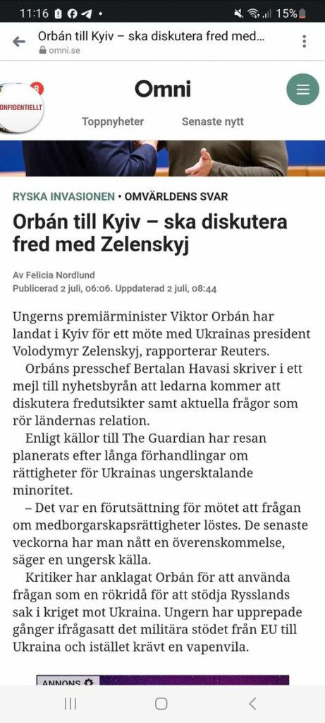 Så ja.Orbán Till Kiev För Fredsdiskussion
