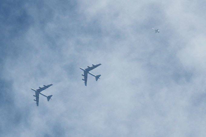 Två amerikanska B-52H strategiska bombplan över Finland.