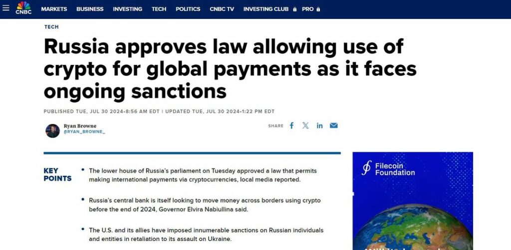 Ryssland Godkänner Crypto För Globala Betalningar