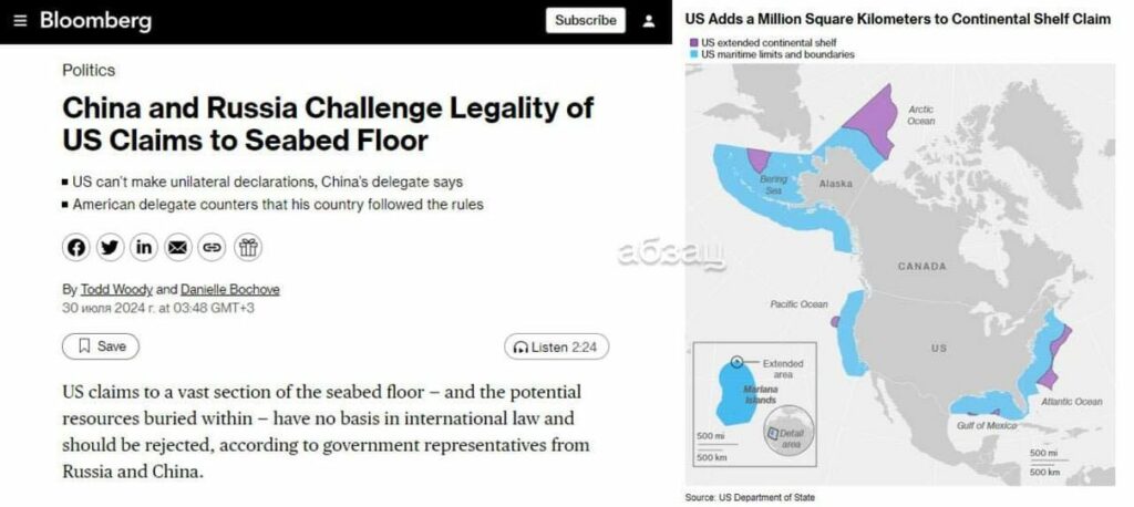 🔻Moskva och Peking motsatte sig Washingtons uttalanden om att öka sin kontinentalsockel i Beringshavet, Stilla havet, Atlanten och Mexikanska golfen med cirka en miljon km².