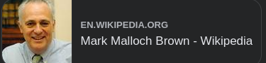 Malloch Brown anslöt sig till Gordon Browns regering 2007 vid Foreign and Commonwealth Office och upphöjdes till House of Lords som en jämnårig livstid . Efter att ha avgått från regeringen 2009 på grund av familjeskäl och personliga skäl, utsågs han ett år senare till ordförande för globala frågor för FTI Consulting . 2014 utsågs han till styrelseordförande för valtekniktillverkaren Smartmatics holdingbolag. Han var president för Open Society Foundations från januari 2021 till juni 2024.