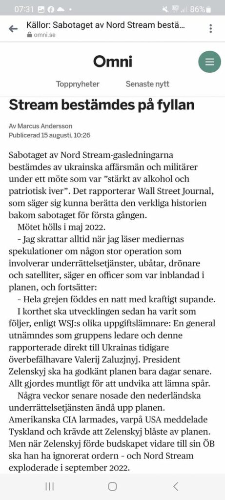 Zelensky svor till alla möjliga gudar att han "inte vet någonting", att "det här är Ryssland" etc. Men allt var självklart från första början, och Nato stod bakom det! Och vi fortsätter att finansiera och beväpna denna skurk?! Detta sabotage är ett krig mot oss!