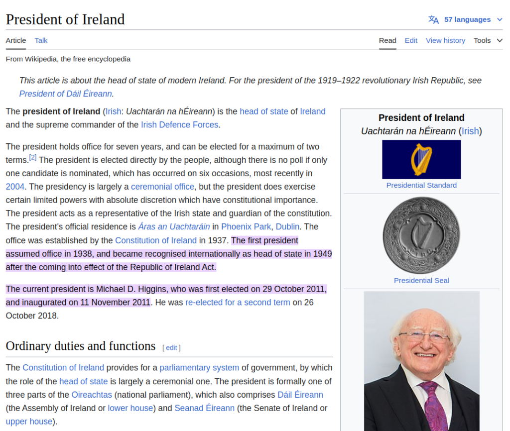 Irlands President