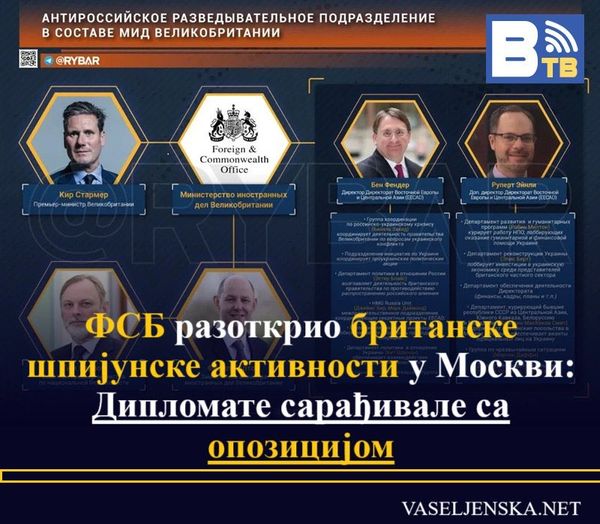 Dokument som hittats av rysk kontraspionage har avslöjat betydande aktiviteter av brittisk underrättelsetjänst i Ryska federationen, som verkar under sken av diplomatiska officerare vid den brittiska ambassaden i Moskva.