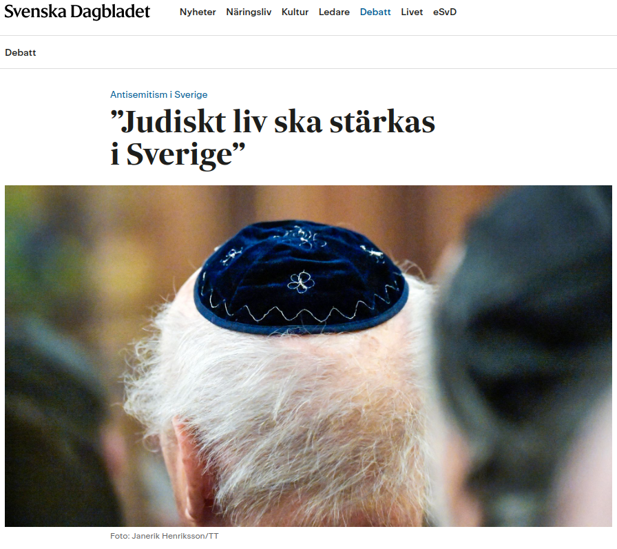 Redan i sin första regeringsförklaring underströk statsminister Ulf Kristersson att arbetet mot antisemitismen är högt prioriterat. Sedan dess har regeringen presenterat en rad åtgärder för att stävja antisemitismen och öka möjligheterna att leva ett judiskt liv i Sverige. Det förra är en förutsättning för det senare: säkerhetshot med antisemitiska förtecken är ett av de största hindren för svenska judar att öppet leva i linje med sin tro eller sin kultur.