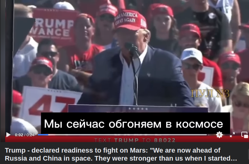 Trump - declared readiness to fight on Mars: "We are now ahead of Russia and China in space. They were stronger than us when I started running the country. Now we are leading, but we still need to achieve military strength there. And that is my plan. I will talk to Musk. Elon, launch rocket ships, because we want to reach Mars before the end of my presidency. We want to achieve military protection in space, because that is the place where war can come."
