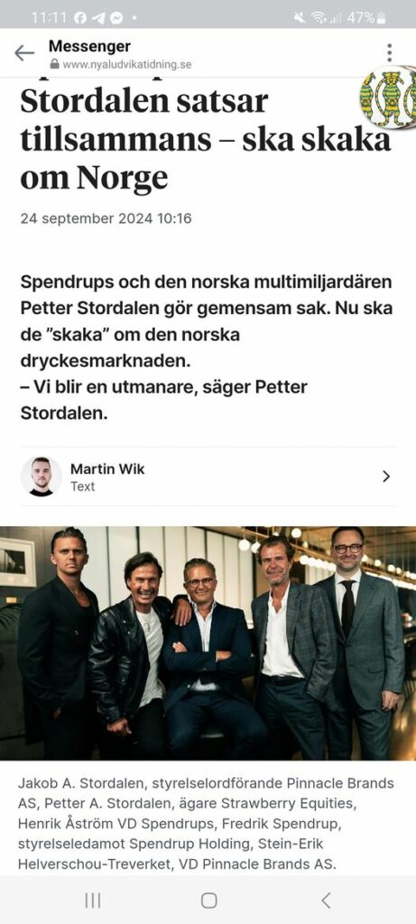 Spendrups är i dag en stor spelare på den svenska dryckesmarknaden. Nu vill företaget även växa i vårt grannland Norge. Tillsammans med dryckesgruppen Belmonte, som är en del av Petter Stordalens Strawberry-koncern, bildas Pinnacle Brands AS.