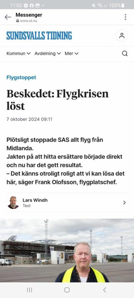 – Egentligen blir det så att det blir samma bolag som kommer att flyga fast inte åt SAS utan åt en annan uppdragsgivare som nu är Lygg. Från första november kommer de att trafikera flygplatsen fem dagar i veckan, säger Frank Olofsson.Nordlig Flygtrafik
