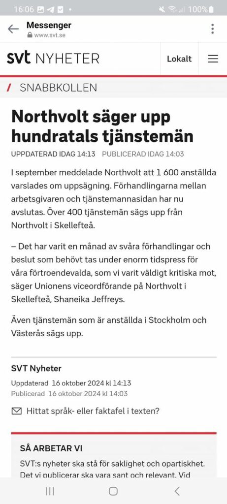 Nämen..Northvolt Säger Upp Över 400 Tjänstemän