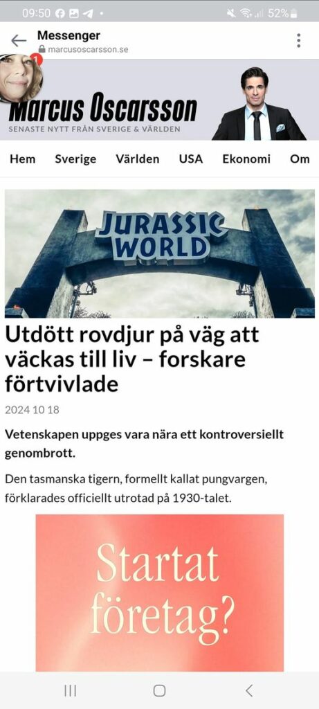 Jättebra..Forskare På Väg Att Väcka Utdött Rovdjur