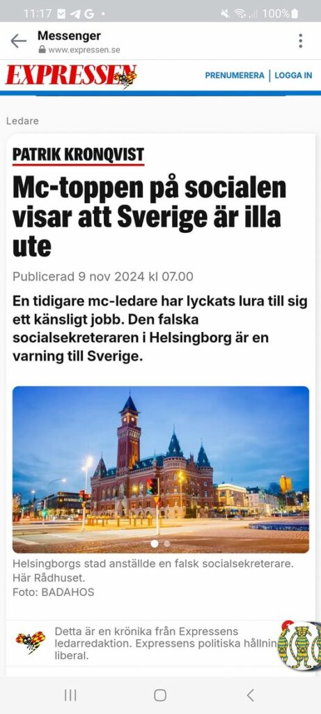 ”Helsingborgs stad anställde före detta mc-president som socialsekreterare.”
