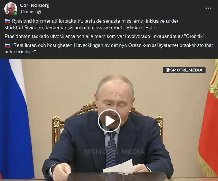 Putin: Oreshnik-Testet Framgångsrikt