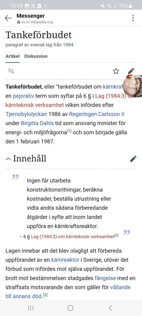 "Forskning och utveckling var, i motsats till vad som ofta sägs, inte förbjuden.[källa behövs] Asea/ABB utvecklade till exempel BWR 90+ för exportändamål[4] långt efter lagens införande."