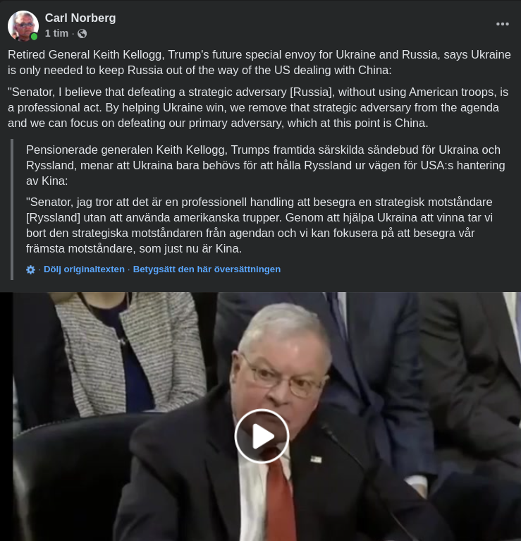 🔺Angående den sista punkten erkänner Kellogg att detta kommer att vara möjligt först efter att Putin har avlägsnats från makten.