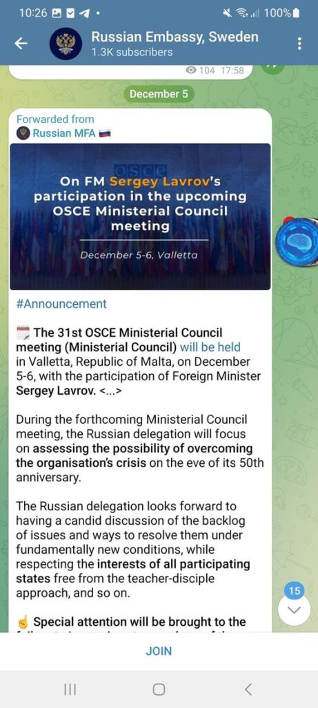 🗓 The 31st OSCE Ministerial Council meeting (Ministerial Council) will be held in Valletta, Republic of Malta, on December 5-6, with the participation of Foreign Minister Sergey Lavrov. <...>