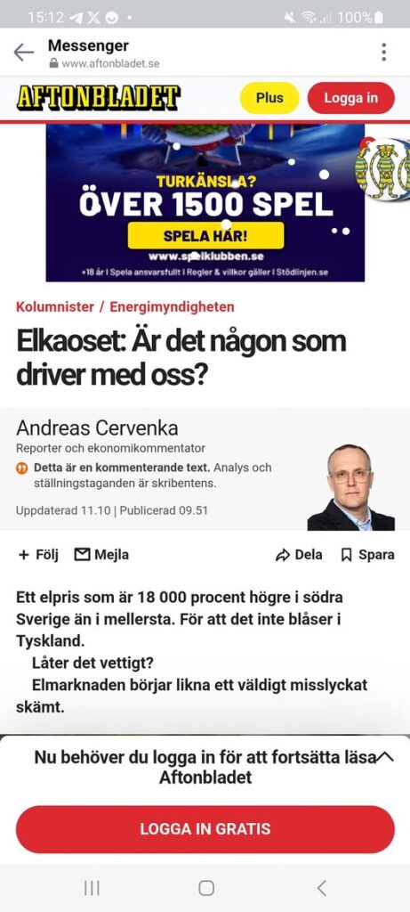 Bengt Ekenstierna, en veteran i branschen, har länge kallat den svenska elmarknaden för dysfunktionell. Han har försökt opinionsbilda för förändringar, bland annat genom nyhetsbrev med namnet “Folkbildningsinlägg”. Det senaste, nummer 211 i ordningen, har rubriken: “Uppgivenhet”.