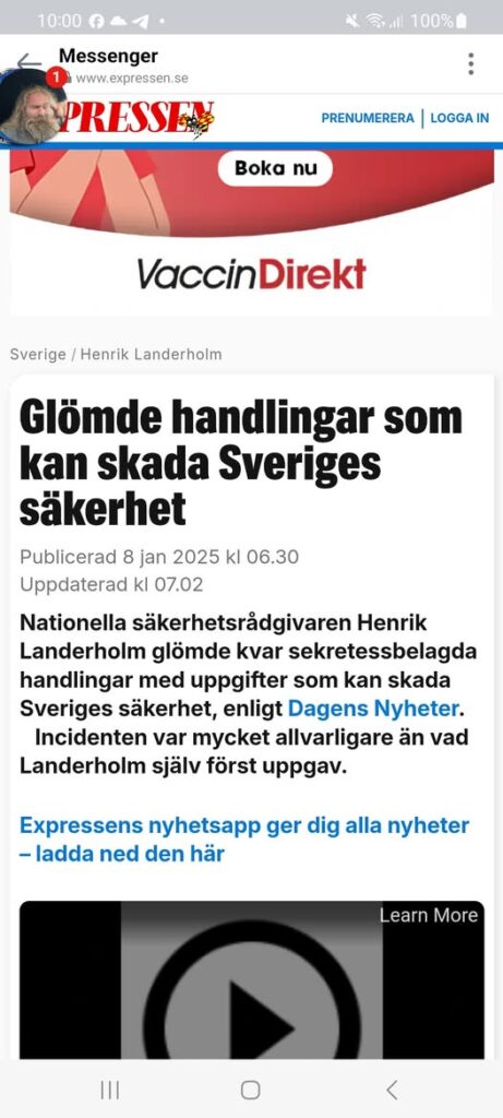 Ulf Kristersson utsåg 2022 sin barndomsvän Henrik Landerholm till regeringens nationella säkerhetsrådgivare med ansvar för bland annat analys och samordning av frågor kring nationell säkerhetGlömsk Landerholm