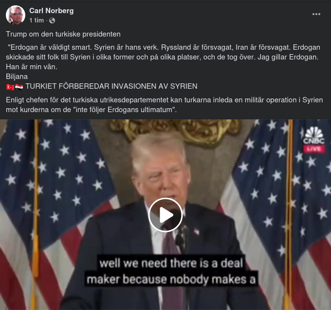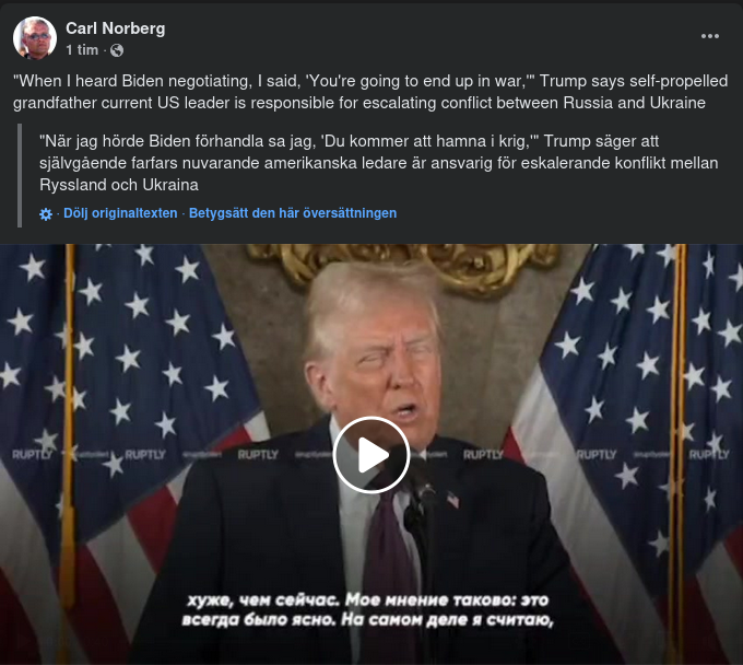"- Så, ni vet, en stor del av problemet har varit Ryssland, i många, många år, långt innan Putin sa att Nato aldrig kunde engagera sig i Ukraina. De sa att det var skrivet i sten. Och någonstans på vägen sa Biden: "Nej, de borde kunna gå med i Nato. " Jaha, då har Ryssland någon precis utanför dörren, och jag kan förstå hur de känner inför det. Men det gjordes många misstag i de förhandlingarna. Och när jag hörde Biden förhandla sa jag: "Du kommer att hamna i ett krig. " Och det visade sig vara ett väldigt dåligt krig. Och det kan eskalera. Detta krig kan eskalera och bli mycket värre än det är nu;