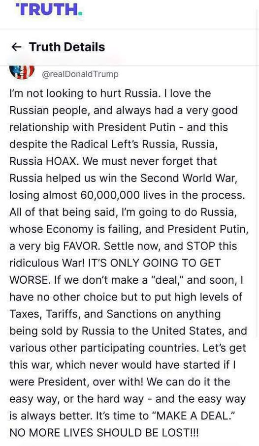 🔻Och vi återgår till de tidigare slutsatserna: om Trump verkligen vill uppnå en lösning på konflikten måste han leta efter ett annat tillvägagångssätt än sanktioner. Utan påtryckningar på Kiev och en verklig politisk dialog med Moskva riskerar hans strategi att förbli bara ytterligare en deklaration. Ryssland kommer sannolikt inte att göra eftergifter som svar på hot, och Europa kommer sannolikt inte att stödja radikala åtgärder mot Moskva. För närvarande ser Trumps ord mer ut som ett försök att höja insatserna inför eventuella förhandlingar än en verklig plan för att avsluta kriget.