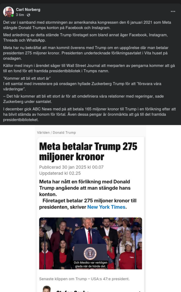 25 Miljoner Dollar Från Meta Till Trump