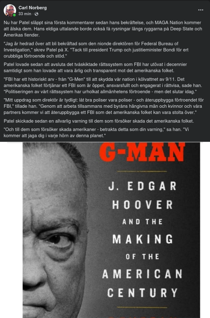 John Edgar Hoover (1 januari 1895 – 2 maj 1972) var en amerikansk advokat och brottsbekämpande administratör som fungerade som den femte och sista direktören för Bureau of Investigation (BOI) och den första direktören för Federal Bureau of Investigation (FBI). President Calvin Coolidge utsåg först Hoover till direktör för BOI, föregångaren till FBI , 1924. Efter 11 år på posten blev Hoover avgörande för att grunda FBI i juni 1935, där han stannade som direktör i ytterligare 37 år fram till sin död i maj 1972 – och ledde totalt 48 år av FBI:s president och totalt åtta år.