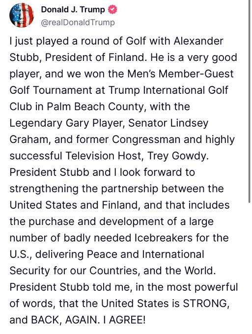 Golf & Isbrytare För Trump & Stubb