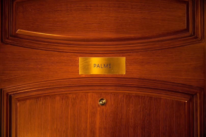 Om polisen, trots allt, skulle göra ett nytt försök med den eventuella kulan i taket kommer de att upptäcka att det på lägenhetsdörren numera står namnet ”Palme”.