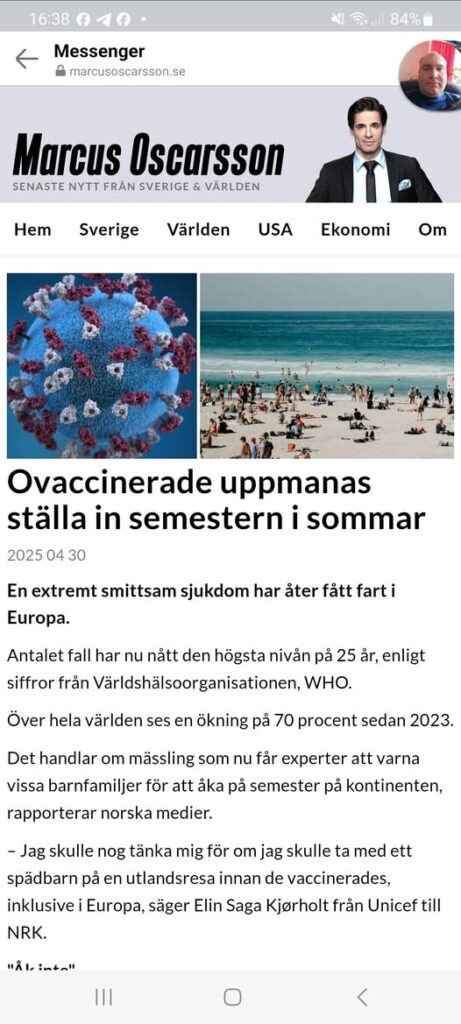 Det handlar om mässling som nu får experter att varna vissa barnfamiljer för att åka på semester på kontinenten, rapporterar norska medier.
