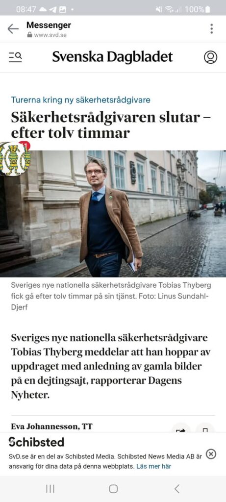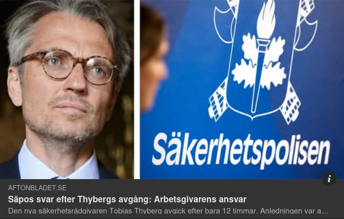 "Den nya säkerhetsrådgivaren Tobias Thyberg avgick efter bara 12 timmar.
