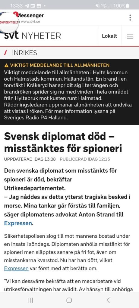 Säkerhetspolisen slog till mot mannens bostad under en insats i söndags. Diplomaten anhölls misstänkt för spioneri men släpptes senare på fri fot, även om misstankarna kvarstod. Nu har han dött, vilket Expressen var först med att berätta om.