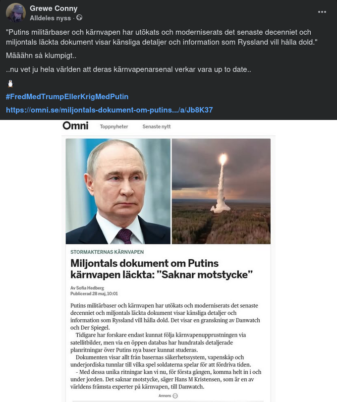 https://omni.se/miljontals-dokument-om-putins-karnvapen-lackta-saknar-motstycke/a/Jb8K37Frihetens hemlighet ligger i att utbilda människor, medan tyrannins hemlighet är att hålla dem i okunskap.