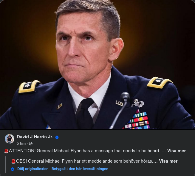 🚨OBS! General Michael Flynn har ett meddelande som behöver höras.