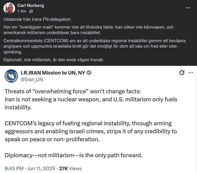 https://www.facebook.com/carl.norberg.54/videos/724141763408906/Frihetens hemlighet ligger i att utbilda människor, medan tyrannins hemlighet är att hålla dem i okunskap.