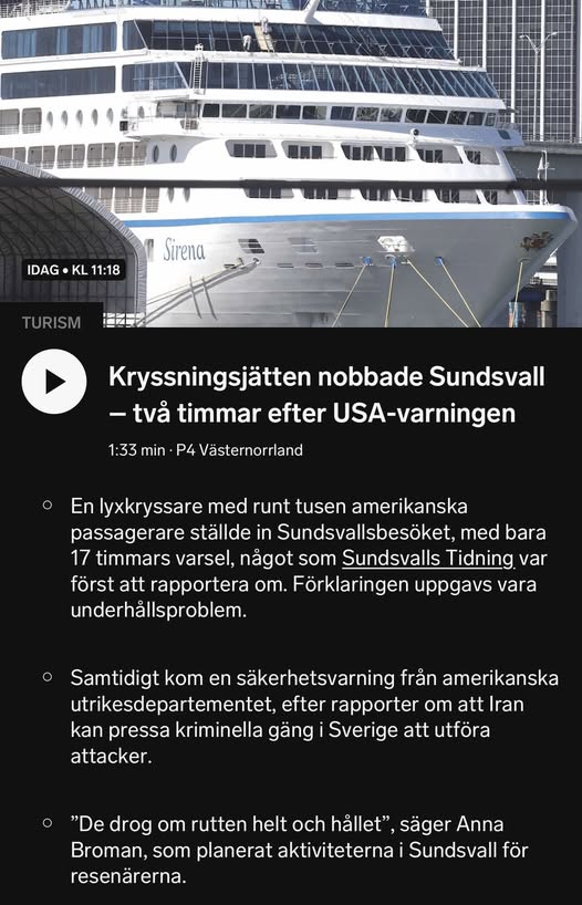 "Lyxiga kryssningsfartyget skulle stanna till i Sundsvall.